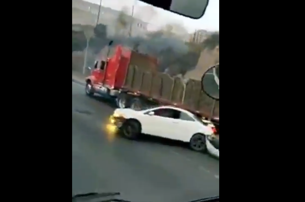 Un video compartido en redes sociales muestra el momento en que un trailero arrastra con su unidad a un vehículo particular color blanco en la carretera México-Querétaro, a la altura de Punta Norte sin detener su curso e incluso cambiando de carril.