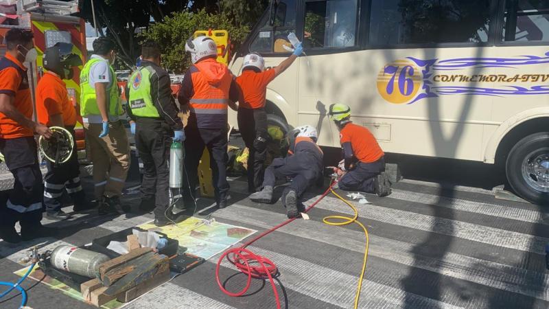 Los rescatistas implementaron colchones neumáticos y luego de algunos minutos lograron extraerla de la parte baja de la unidad. Después la valoraron y la trasladaron a un hospital para que recibiera la atención necesaria.