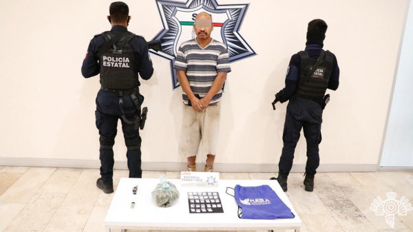 Atlixco, Pue.- Durante un recorrido de vigilancia en la colonia Ricardo Flores Magón en este municipio, agentes de la Policía Estatal detuvieron a un presunto distribuidor de droga identificado como Juan X., alias “El Pelón”, quien de acuerdo a reportes del área de inteligencia de la Secretaría de Seguridad Pública, formaría parte de la pandilla denominada “Angelinos 13”.