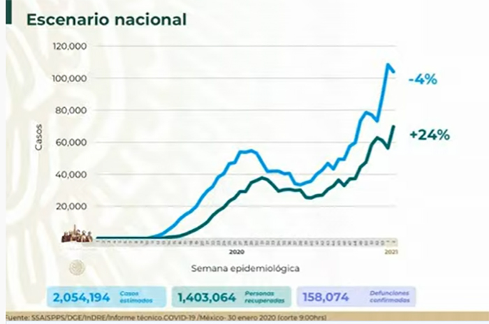 Asimismo se tiene registrados 158 mil 74 muertes por coronavirus desde que inició la pandemia.