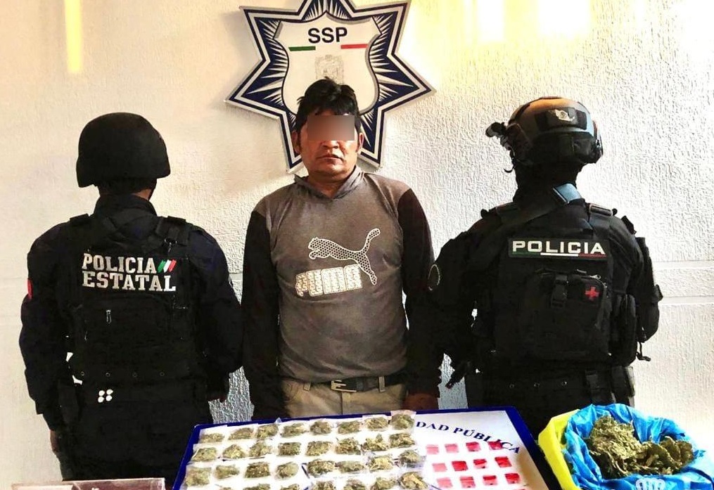 Puebla, Pue. A través de una denuncia anónima, agentes de la Policía Estatal detuvieron en inmediaciones de la colonia Chapultepec a un presunto distribuidor de droga identificado como Antonio R., alias “El Fierros”.