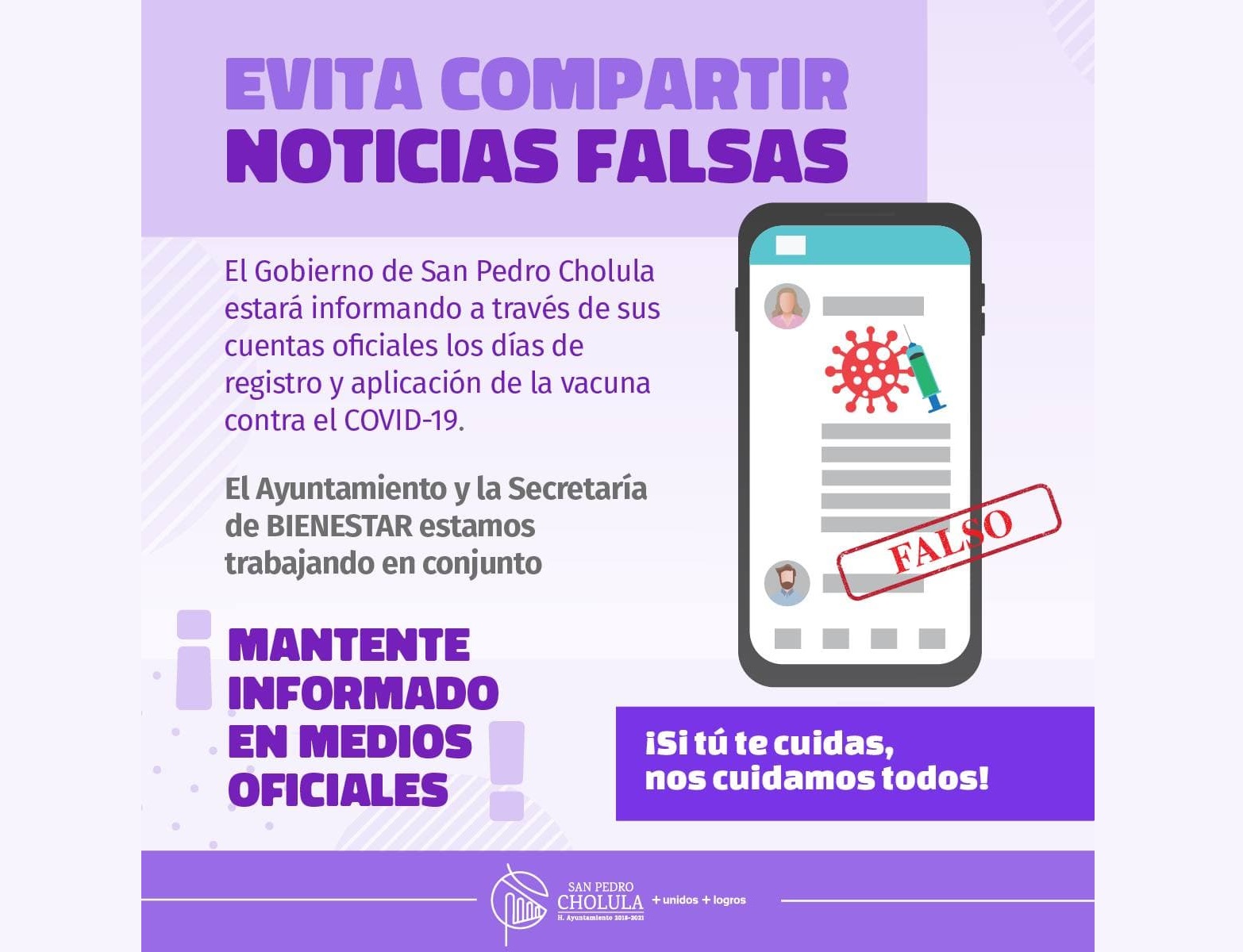 San Pedro Cholula, Pue.- Mensajes falsos sobre la campaña de vacunación contra el Covid19 ha generado caos en el municipio de San Pedro Cholula, donde las autoridades tuvieron que intervenir ante la aglomeración de personas que comenzaba en ciertos puntos.