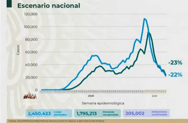 México supera las 205 mil muertes por covid-19 El país registra 205 mil 2 muertes por covid-19, mientras que hay 2 millones 450 mil 423 casos estimados de coronavirus SARS-CoV-2, informó el director de Epidemiología, José Luis Alomía.