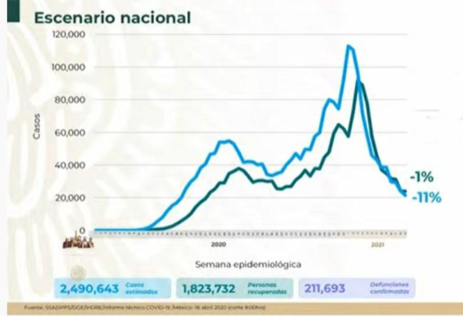 El país acumula 211 mil 693 muertes por covid-19  México suma 211 mil 693 muertes por coronavirus SARS-CoV-2 y dos millones 490 mil 643 casos estimados, de acuerdo al informe de la Secretaría de Salud dado a conocer por Ruy López Ridaura, director general del Centro Nacional de Programas Preventivos y Control de Enfermedades.