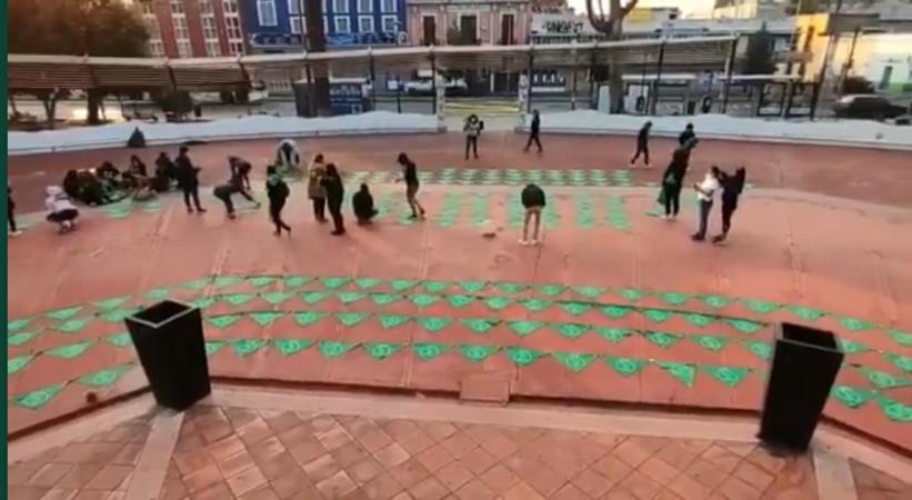 Las integrantes del Colectivo Coatlicue Siempre Viva colocaron cientos de pañuelos verdes en el Kiosco del Paseo Bravo, con el objetivo de exigirle a los diputados que conforman el Congreso del Estado para que avalen la despenalización del aborto.