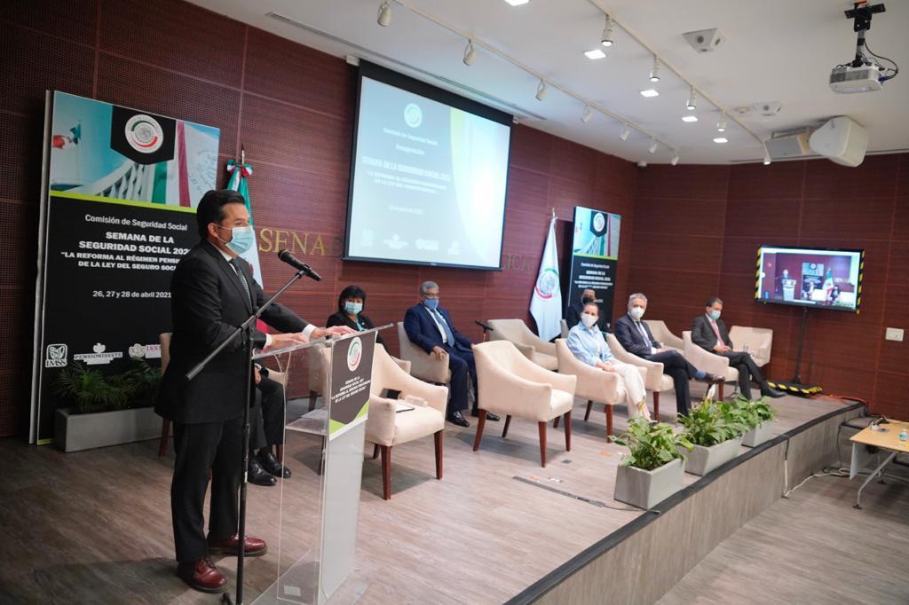 Al participar en la inauguración de la Semana de la Seguridad Social 2021 en el Senado de la República, señaló que las reformas aprobadas en diciembre pasado recuperan el enfoque social del sistema pensionario.