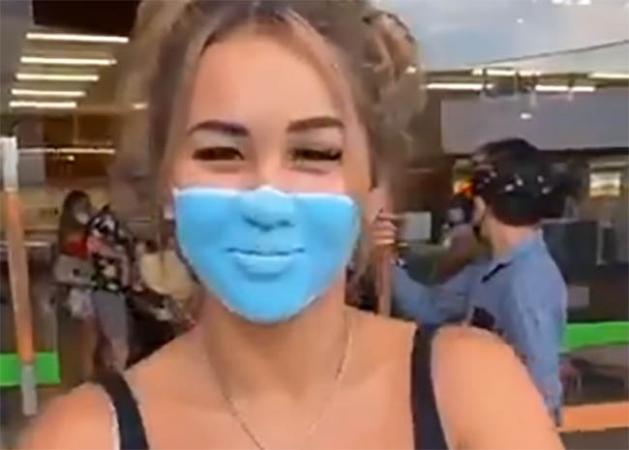 En el video se observa cómo el joven graba a su amiga, quien entre risas se pasea y realiza sus compras en el supermercado con un cubrebocas pintado en el rostro.