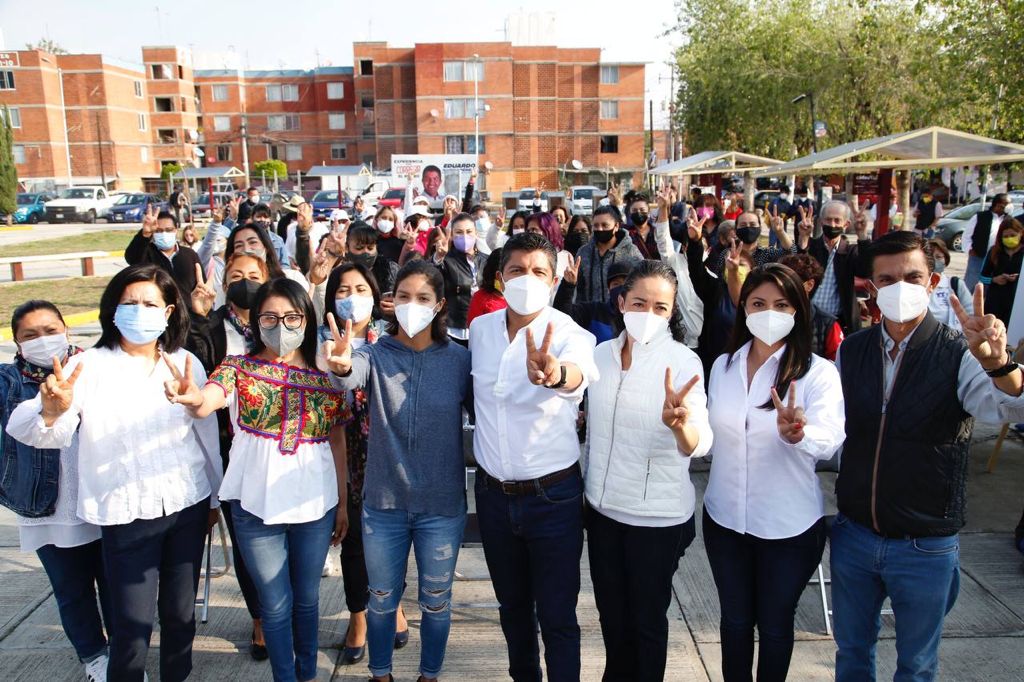 Puebla, Pue.- Para que las mujeres poblanas cuenten con servicios de salud, mejores ingresos económicos y vivan libres de violencia, Eduardo Rivera Pérez, candidato a la presidencia municipal de Puebla por PAN, PRI, PRD, PSI y CPP pondrá en marcha “Contigo Mujer”, una de las 6 acciones transversales de su próxima administración, así lo anunció en la explanada del Infonavit Agua Santa.