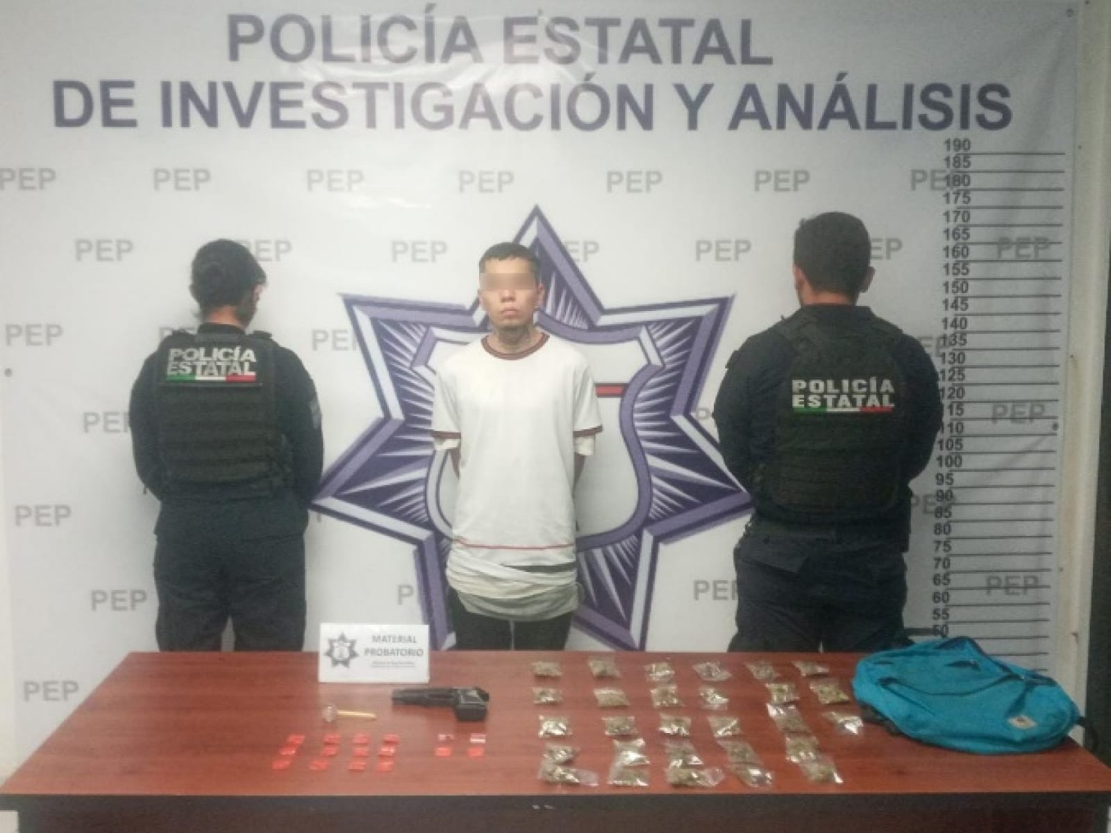 Puebla, Pue.- Durante labores de vigilancia, agentes de la Policía Estatal detuvieron a un presunto narcomenudista identificado como Víctor Manuel A., alias “El Chiquis”.