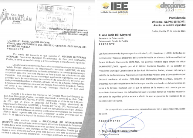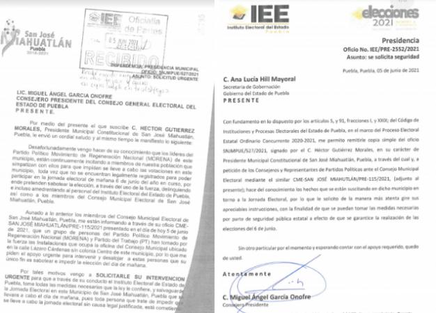 Fue mediante un escrito enviado al Instituto Estatal Electoral como el presidente municipal Héctor Gutiérrez Morales, solicitó la intervención para que se resguarden los puntos de votación y no se tenga un conflicto mayor que impida el desarrollo de esta jornada electoral, solicitando al Estado use la fuerza Pública para estos fines.