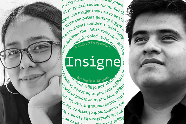 Puebla, Pue.- Karla y Miguel Ángel están a punto de obtener el grado de licenciatura en Diseño Gráfico por la BUAP. Este primer logro en su naciente carrera ha sido coronado con un primer lugar internacional en el Olivetti Design Contest, un certamen convocado por la empresa italiana Olivetti, en el cual los estudiantes de la Máxima Casa de Estudios en Puebla se colocaron por encima de más de 100 estudiantes, de 23 universidades del mundo, con su diseño tipográfico Insigne.