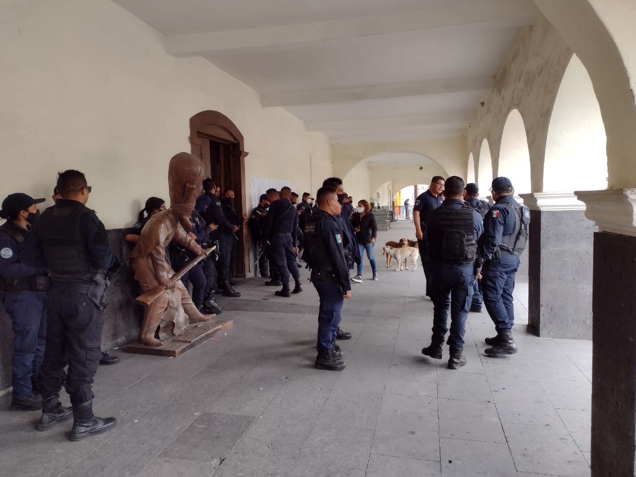 Derivado de la protesta, el palacio municipal fue resguardado por elementos de la policía municipal.