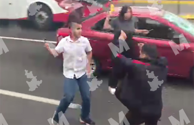 VIDEO Tras carambola se lían a golpes en la México-Puebla a la altura de Texmelucan