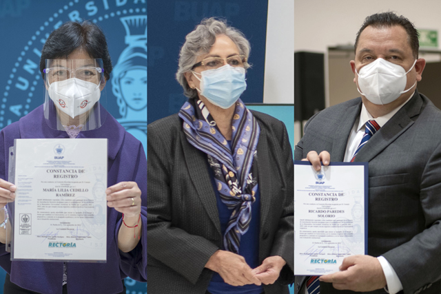 Puebla, Pue.- Luego de recibir sus constancias de idoneidad, ante la Comisión Electoral este jueves 2 de septiembre se registraron como candidatos y candidatas a la Rectoría de la BUAP, periodo 2021-2025, los académicos María del Socorro Guadalupe Alicia de la Inmaculada Concepción Grajales y Porras, María Lilia Cedillo Ramírez y Ricardo Paredes Solorio.