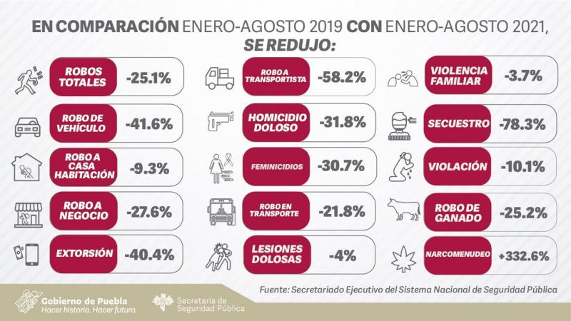 En pandemia, Puebla redujo incidencia en 14 delitos de alto impacto: SESNSP