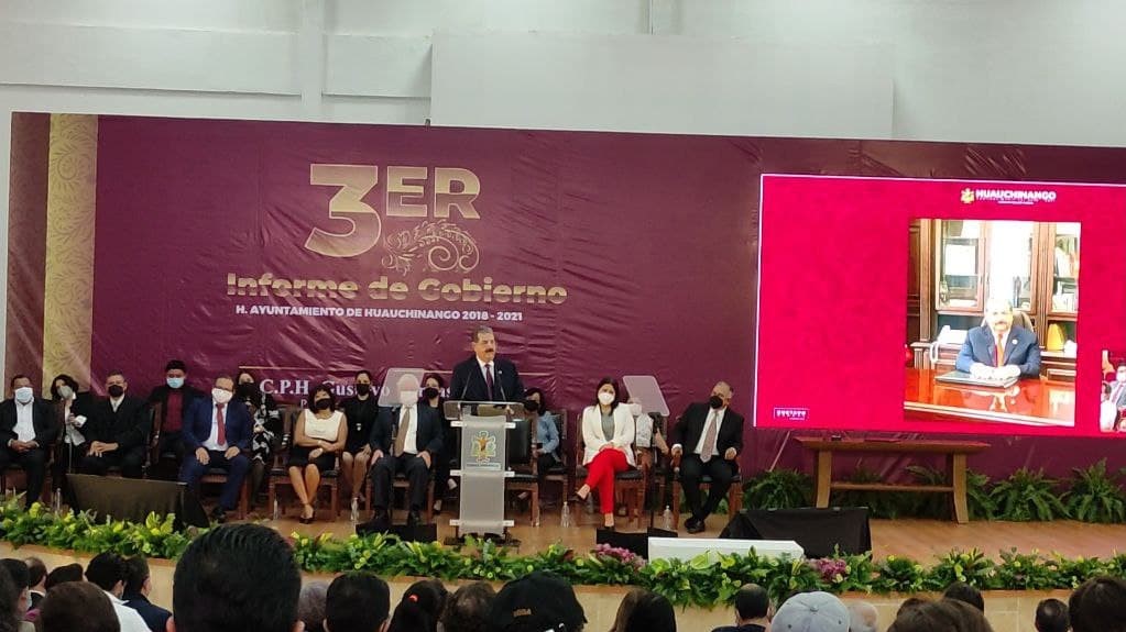 El primer alcalde del Movimiento de Regeneración Nacional (MORENA) rindió su informe de gobierno ante una mínima asistencia, con el argumento de la pandemia, aunque en las afueras del Recinto ferial se dispuso de un operativo de seguridad para evitar el ingreso de personas no invitadas.