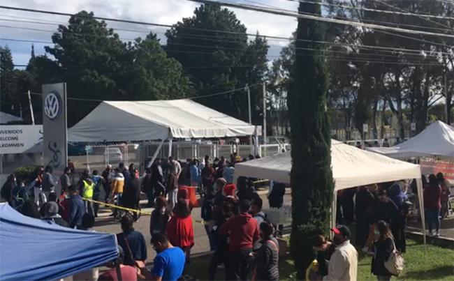 San Andrés Cholula, Pue.- Largas filas realizaron jóvenes poblanos para recibir la vacuna contra Covid- 19 en el punto de vacunación instalado en la Unidad Deportiva Volkswagen, sitio donde además se generó un importante caos vehicular ya que se ocupó un carril de esta importante vía de comunicación.
