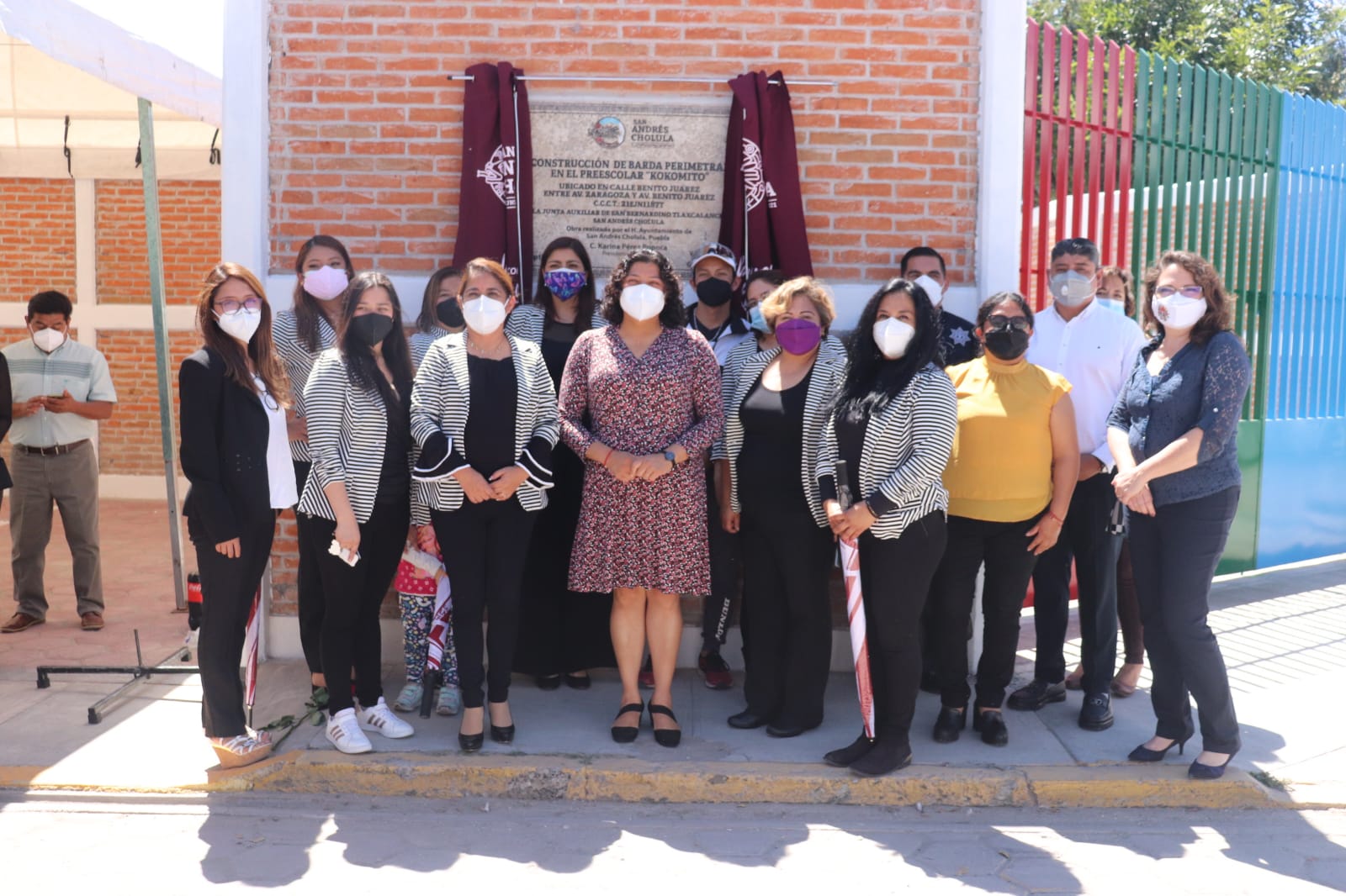 San Andrés Cholula, Pue.- La presidenta de San Andrés Cholula, Karina Pérez Popoca, encabezó una gira de trabajo por Tlaxcalancingo donde entregó una barda perimetral y puso en marcha el arranque de obra de la pavimentación de la calle Tlaxcalanzin, una de las últimas obras que dejará.
