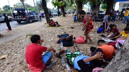 Los migrantes llevan tres días protestando afuera de las oficinas del Instituto Nacional de Migración en Ciudad Hidalgo.