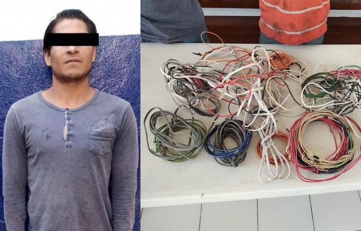 Aseguran a dos sujetos por robo de cable en Tehuacán