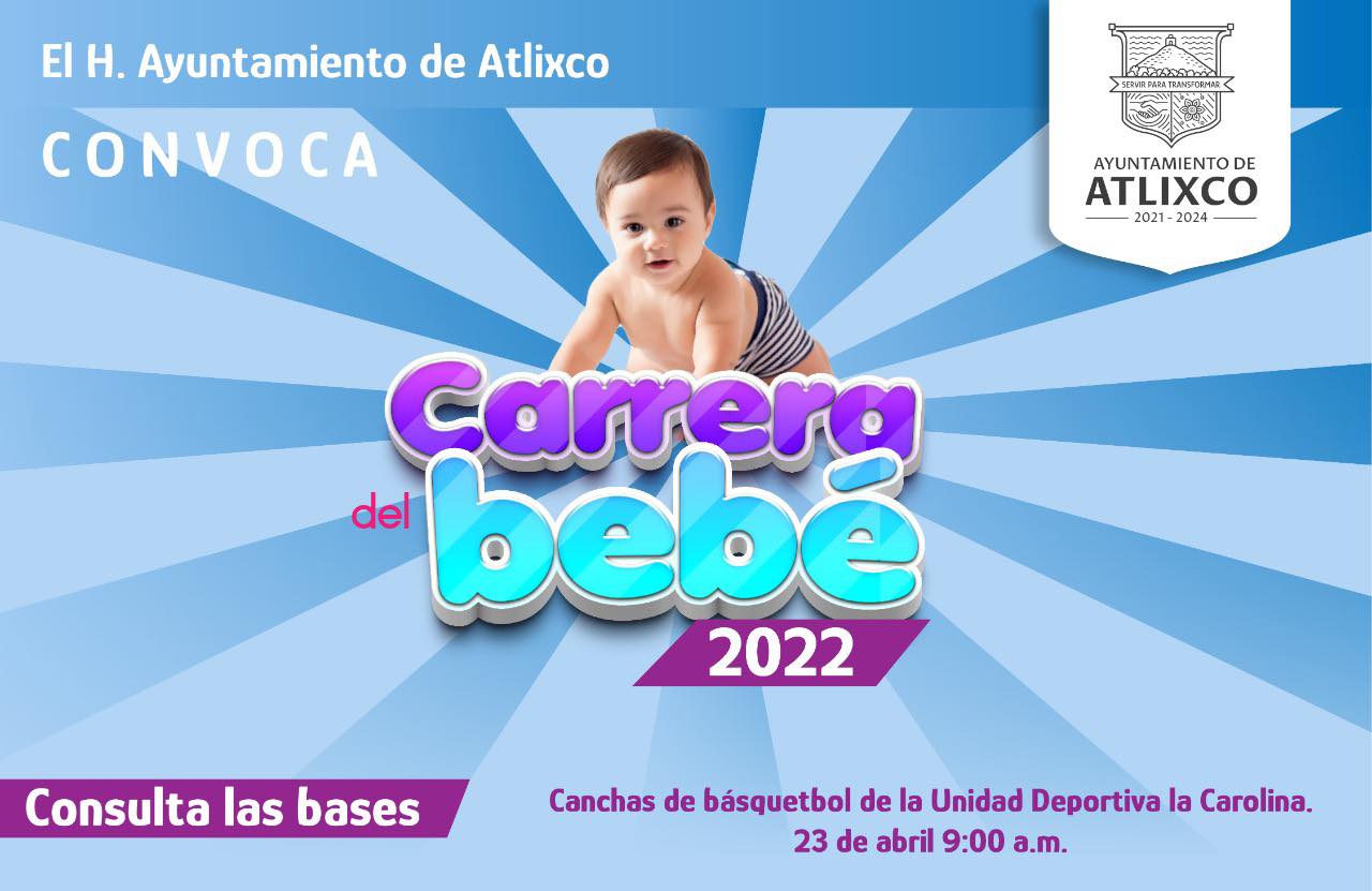 Atlixco, Pue.- Con la finalidad de promover la cultura física y la práctica del deporte, a través de la Jefatura de Educación y Deporte, se alista la Carrera del Bebé 2022 para el próximo 23 de abril en las Canchas de Básquetbol de la Unidad Deportiva la Carolina.