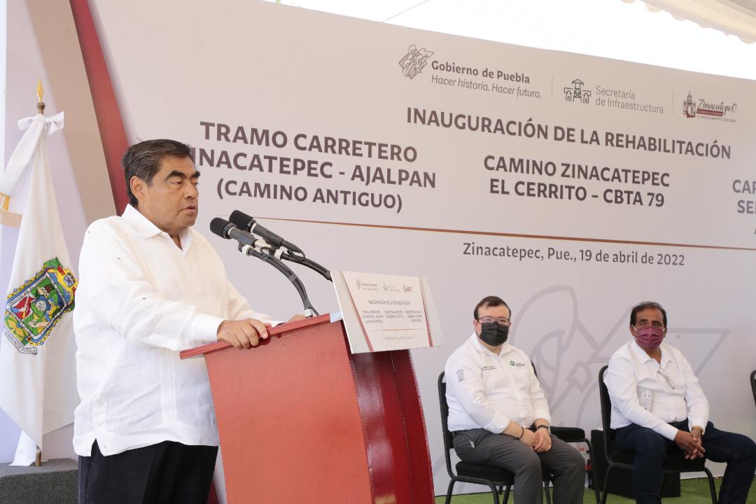 Zinacatepec, Pue.- Al inaugurar obras carreteras por más de 20 millones de pesos en este municipio, el gobernador Miguel Barbosa Huerta recalcó que su administración mantiene la convicción de ser cercana a la gente, además de que aplica acciones con rectitud y sin abusos ni atropellos.