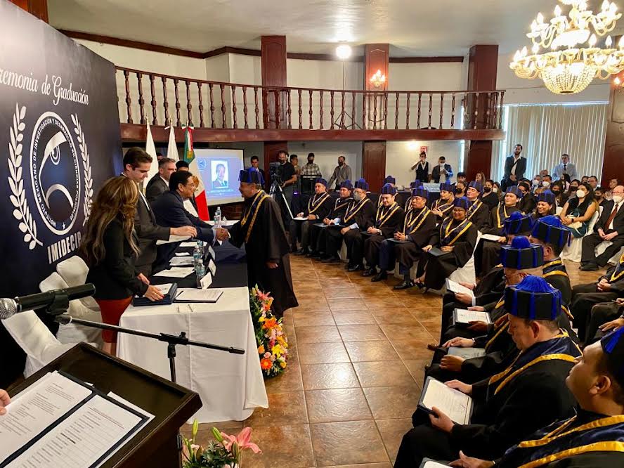 En las instalaciones de un conocido salón social del municipio de San Pedro Cholula, se llevó a cabo la ceremonia de graduación, la cual fue encabezada por el Rector del IMIDECIP, Guillermo Alberto Hidalgo Vigueras, quien felicitó a la primera generación de este Doctorado y reconoció la gran labor que realizan los profesionales de la Seguridad Pública en el país.