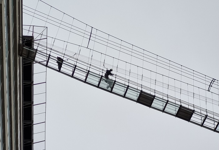 Clausura gobierno estatal puente de cristal colgante en Palmas Plaza