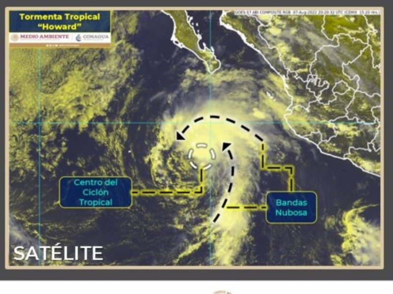 La tormenta tropical "Howard" se localiza a 595 kilómetros al sur de Cabo San Lucas, Baja California Sur y a 695 km al oeste-suroeste de Manzanillo, Colima, en el Pacífico mexicano.