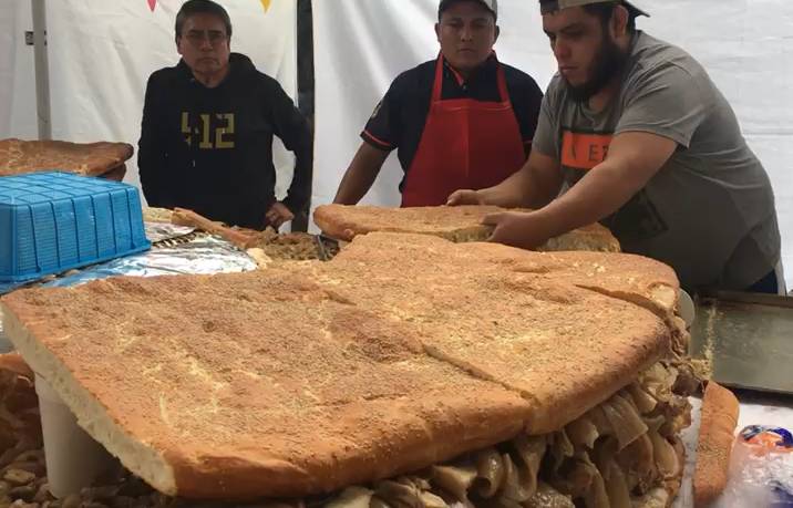 Elaboran cemita monumental de carnitas en San Pedro Cholula