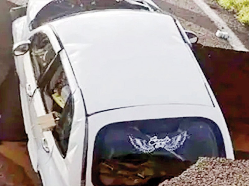 “La carretera se abrió, tragándose el auto y arrebatando la vida a sus dos ocupantes”, expresó un automovilista que manejaba por el lugar y quien dio aviso a las autoridades.