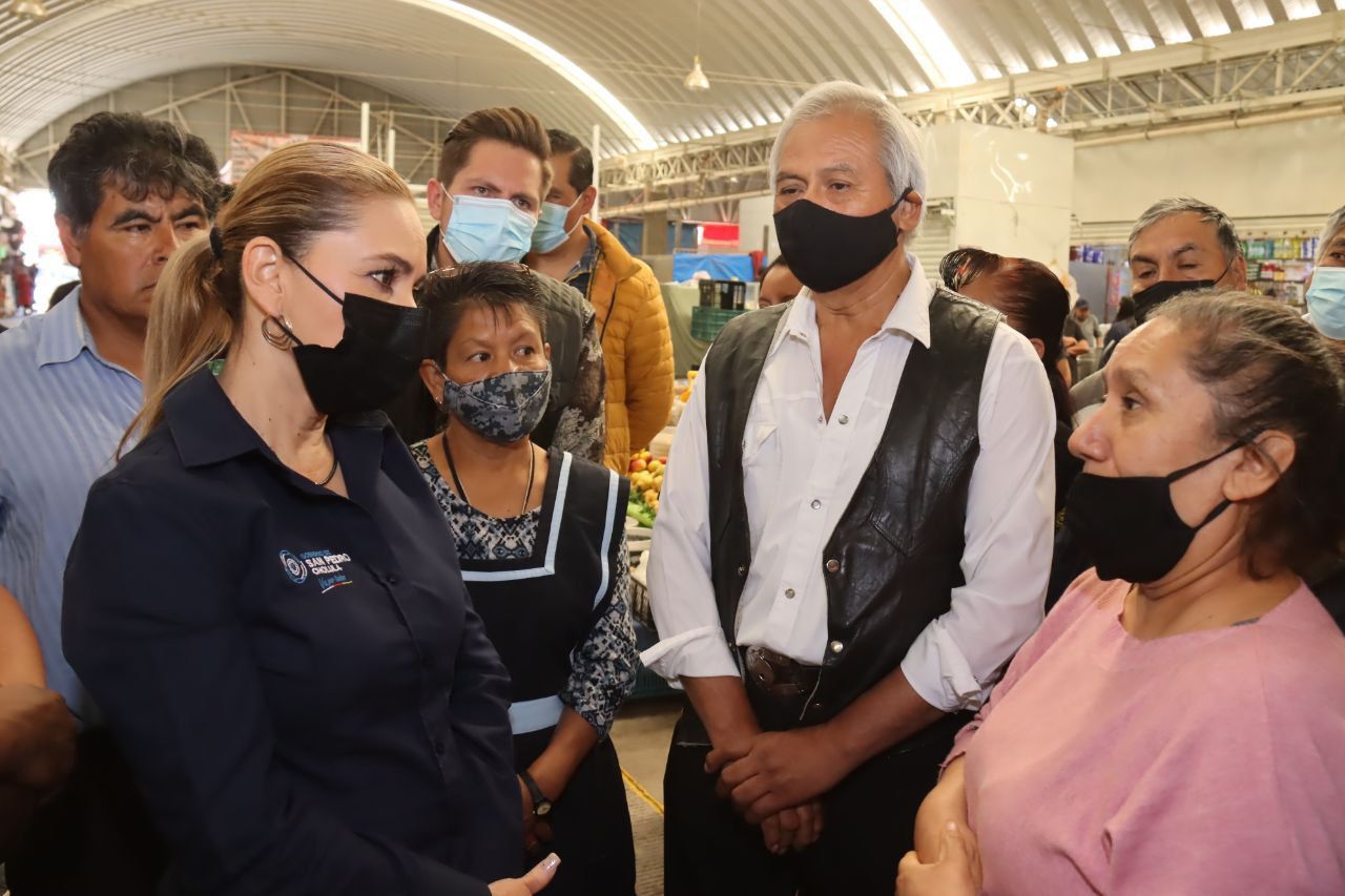 San Pedro Cholula, Pue.- Derivado de una solicitud ciudadana por parte de las y los locatarios del Tianguis de Santiago Mixquitla, la presidenta municipal de San Pedro Cholula, Paola Angon, entregó este miércoles un total de 14 rejas instaladas en los accesos de dicho espacio.