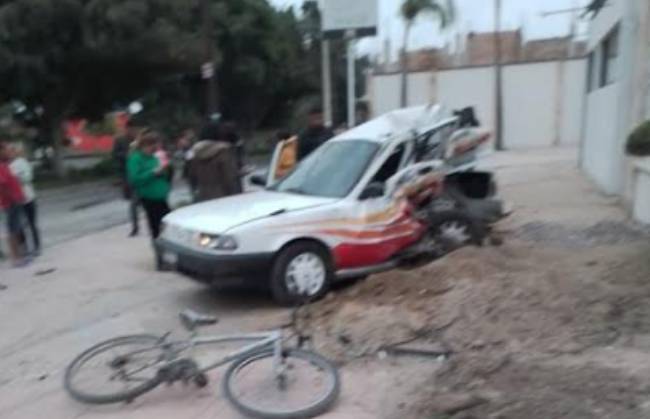 Fue cuando el conductor de un automóvil Volkswagen Vento de color blanco con placas de circulación TNR-010-A circulaba a exceso de velocidad sobre la misma avenida y perdió el control del volante ocasionando impactar contra la unidad del servicio público, para después quedar volcados metros más adelante.
