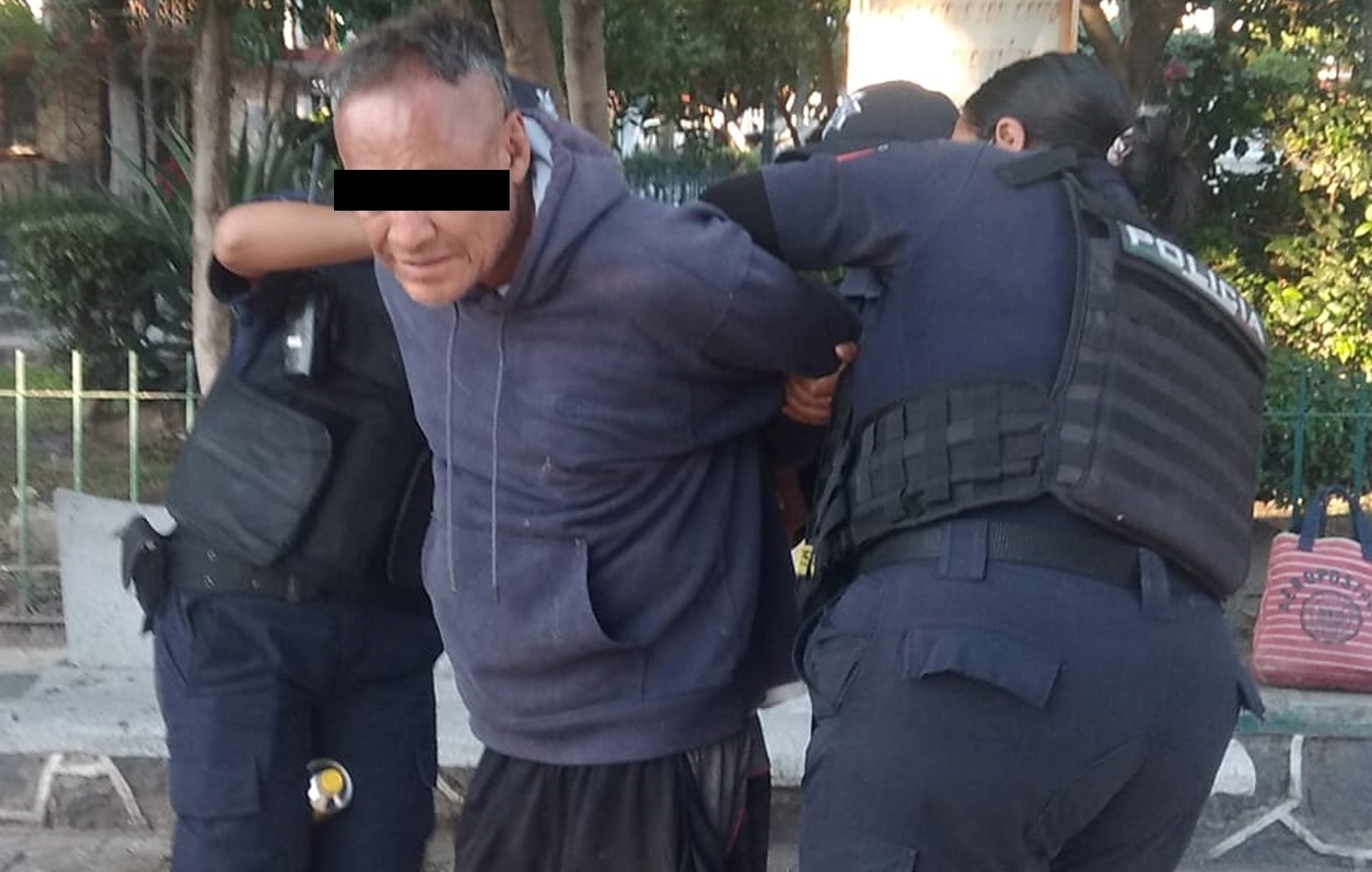 Debido a lo anterior, el masculino fue reportado a los policías municipales, luego de que mujeres que fueron agredidas, lo denunciaron ante las autoridades, por lo cual uniformados acudieron l zócalo de la ciudad donde se encontraba este individuo sentado.