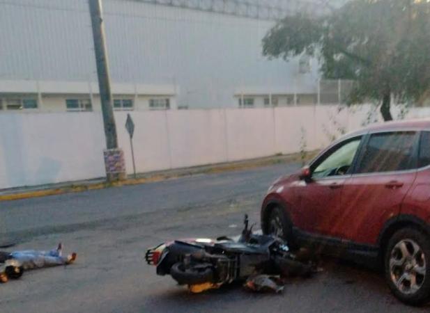 Puebla, Pue.- La colisión de una camioneta y una motoneta causó lesiones en el motociclista, en la colonia Maravillas.