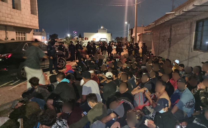 Derivado de ello, personal del INM y de la Policía Estatal se trasladaron al lugar, y al llegar advirtieron que de una casa salían y corrían personas que solicitaban auxilio, ya que -comentaron- estaban siendo escondidas, entre ellas niñas y niños en una habitación sin luz ni ventilación.