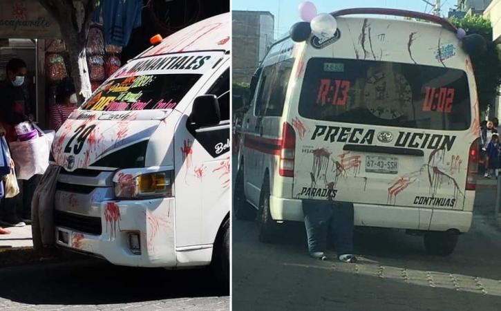 Combis con cuerpos y sangre falsos escandalizan a exfuncionario de Tehuacán