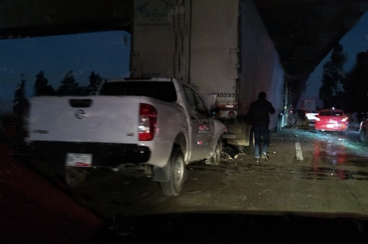 Puebla, Pue.- Esta madrugada se registró un choque de varios vehículos sobre la autopista México-Puebla.