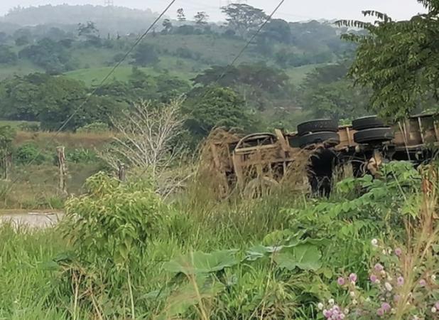 En el lugar se volcó un camión, conocido como torton, el cual transportaba en el área de carga a un grupo de migrantes.