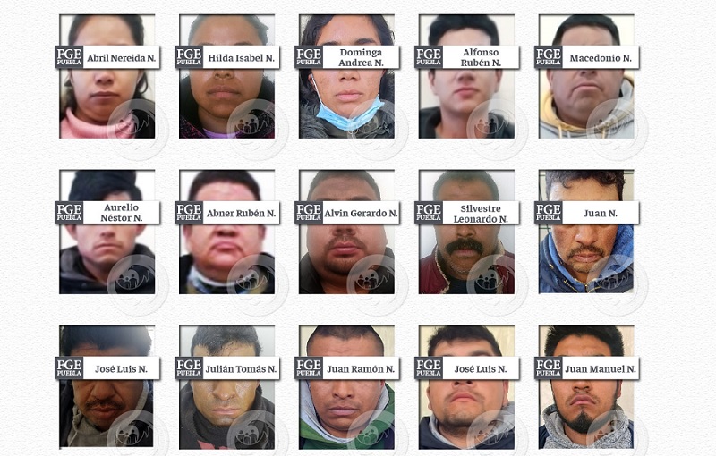 Adicionalmente, durante las labores de investigación, los elementos detuvieron a 15 personas identificadas como: Abril Nereida N., Alfonso Rubén N., Macedonio N., Aurelio Néstor N., Abner Rubén N., Alvin Gerardo N., Hilda Isabel N., Silvestre Leonardo N., Juan N., José Luis N., Julián Tomás N., Juan Ramón N., Dominga Andrea N., José Luis N. y Juan Manuel N.