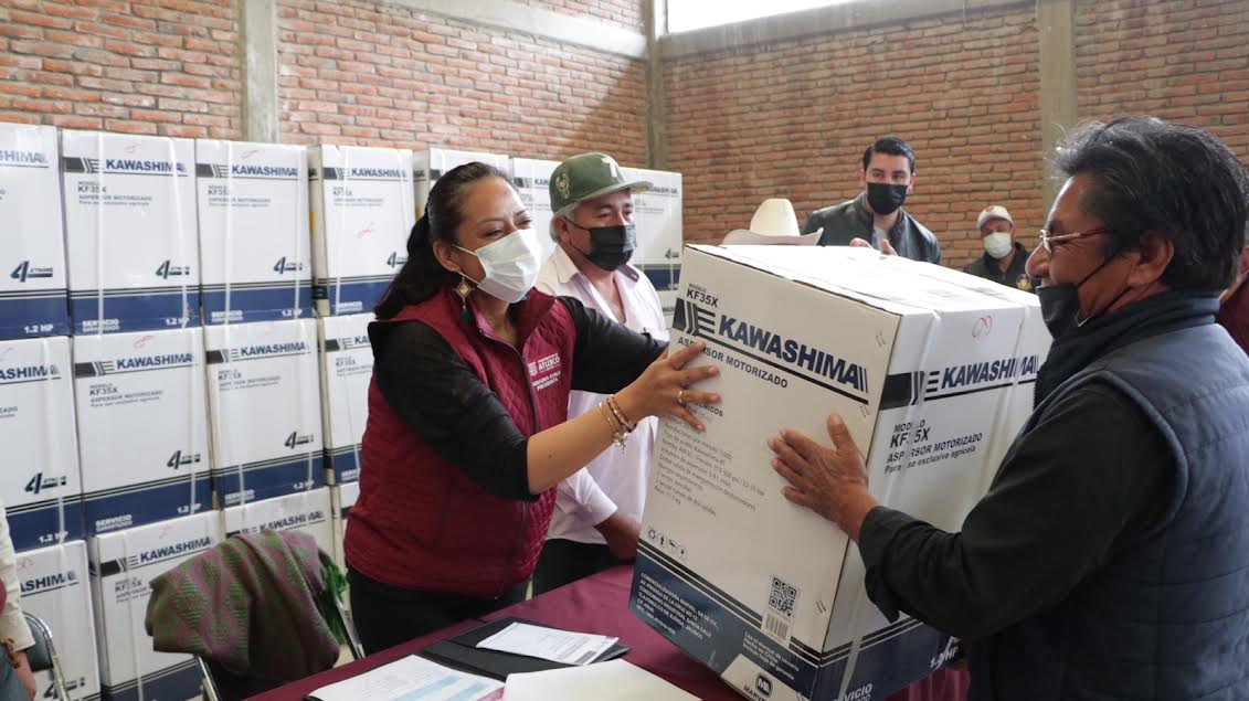 Ayala entrega aspersoras de fertilizante en Atlixco