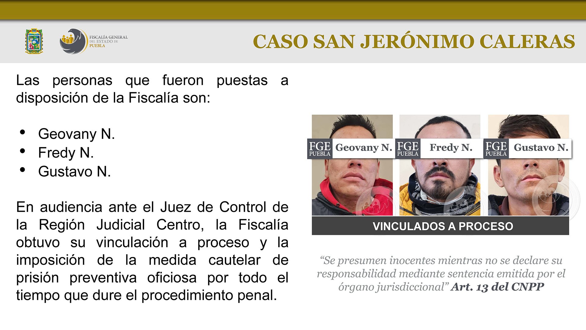 Las personas que fueron puestas a disposición de la Fiscalía son: Geovany N, Fredy N y Gustavo N.