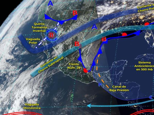 Las condiciones meteorológicas descritas serán ocasionadas por el frente número 28, que será reforzado por una nueva masa de aire frío y la corriente en chorro subtropical.