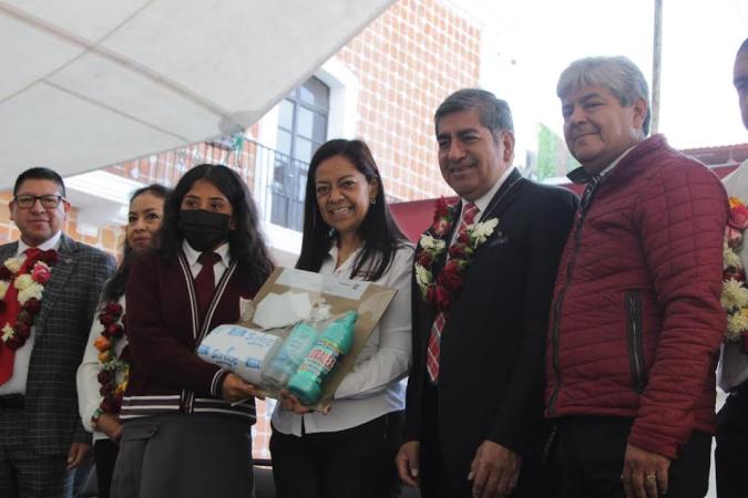 Atlixco, Pue.- El Gobierno del Estado de Puebla, a través de la Secretaría de Educación Pública y el Ayuntamiento de Atlixco encabezado por Ariadna Ayala, realizó la entrega simbólica de material higiénico a 399 escuelas de la región, contribuyendo al bienestar de niñas, niños y adolescentes de instituciones públicas.