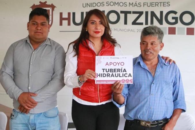 Huejotzingo, Pue.- La presidenta municipal Angélica Alvarado Juárez, visitó la Colonia Álvaro Obregón, perteneciente a la Junta Auxiliar de San Miguel Tianguizolco, donde hizo la entrega de 420 metros de tubería hidráulica, misma que será utilizada para el abastecimiento de agua potable de la zona.