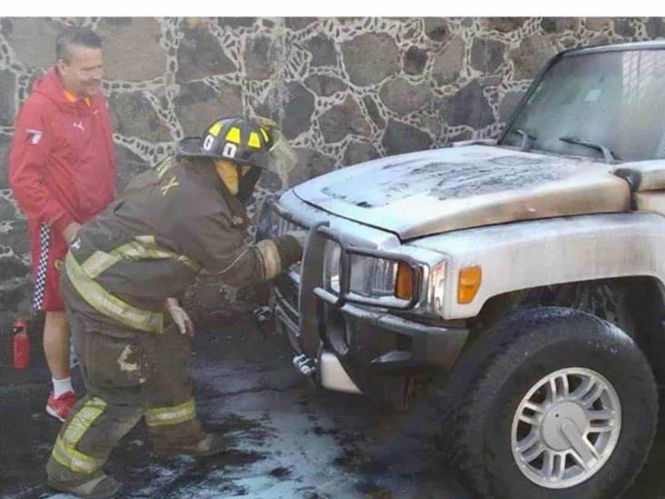 Camioneta de Alfredo Adame se incendia y bomberos lo rescatan