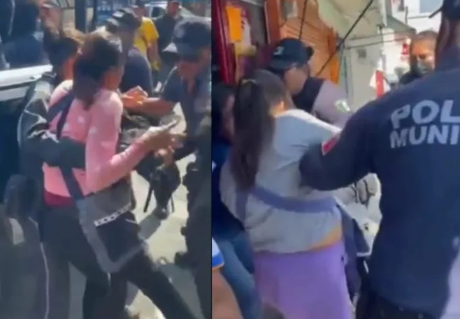 La detención se hizo pública el fin de semana a través de un video difundido en redes sociales, en el que se pudo observar a los policías jalar y someter a las mujeres que se encontraban en comercios.