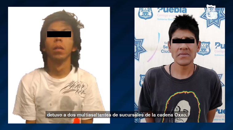 Puebla, Pue.- Resultado de la atención a distintos reportes por la comisión de conductas delictivas, la Secretaría de Seguridad Ciudadana (SSC) del Municipio de Puebla, detuvo a dos multiasaltantes de sucursales de la cadena Oxxo que operaban en la capital poblana.
