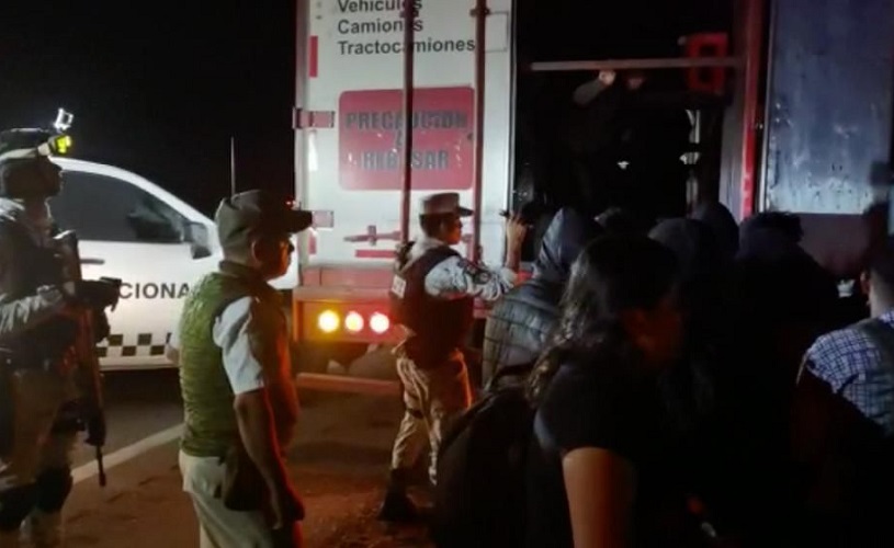 Con el apoyo de la Guardia Nacional (GN) -poco antes de la media noche del miércoles 12 de abril- se logró localizar este transporte, en el que se escuchaban gritos de auxilio de quienes viajaban en condiciones de hacinamiento.