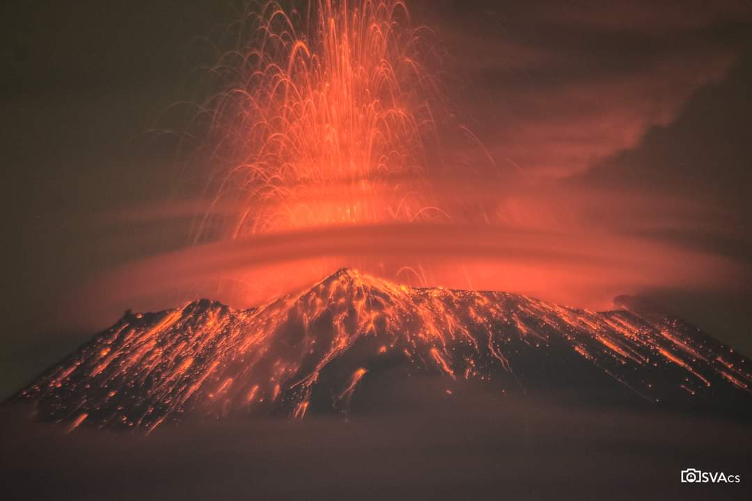 Puebla, Pue.- Según la plataforma Sky Alert el volcán Popocatépetl tuvo una erupción estromboliana la tarde-noche del viernes con emisión de bombas de lava.